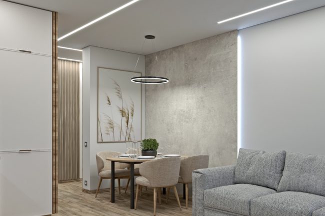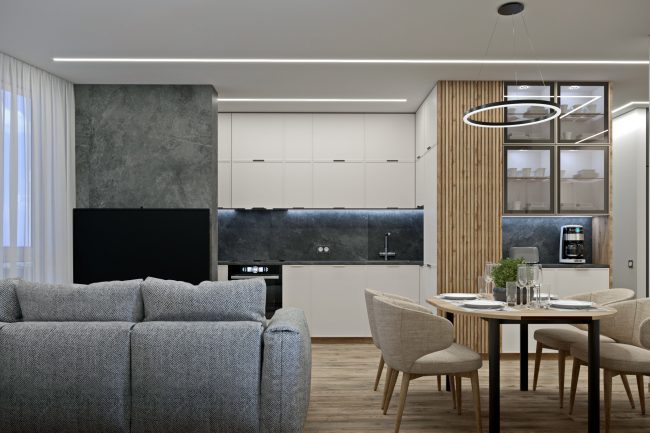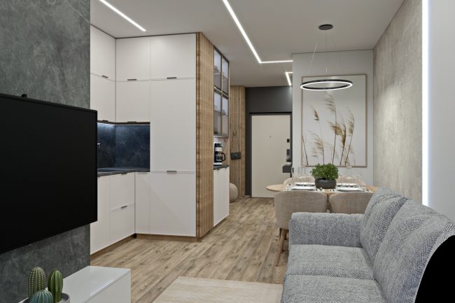 Design wnętrza trzypokojowego mieszkania w nowoczesnym stylu