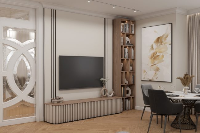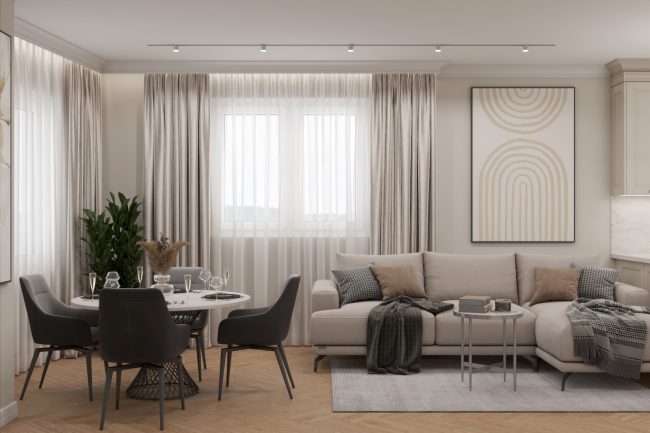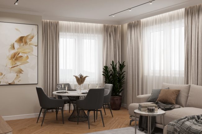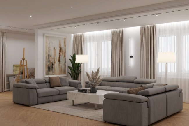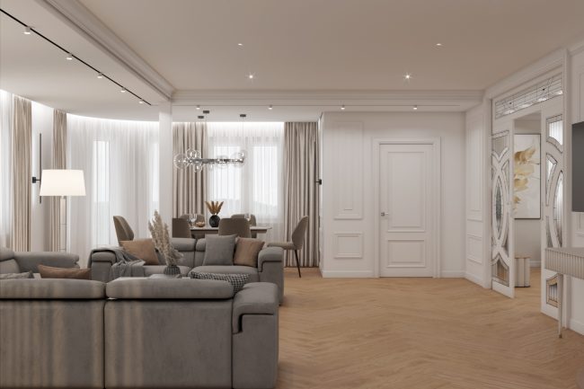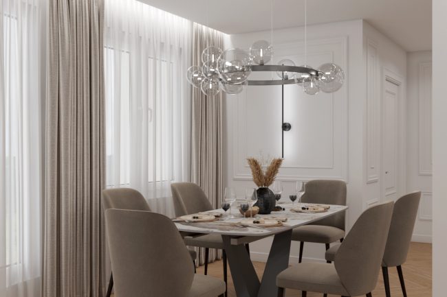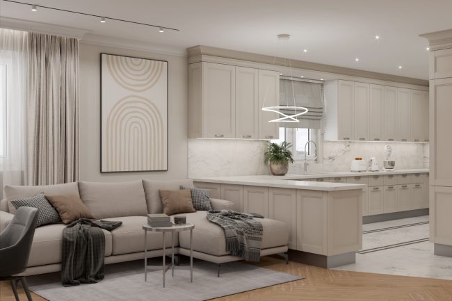Ten projekt łączy klasyczną amerykańską estetykę z nowoczesnymi elementami. Projekt skupia się na przestrzeni, funkcjonalności i wyrafinowanych detalach, które podkreślają styl podmiejskiego życia.