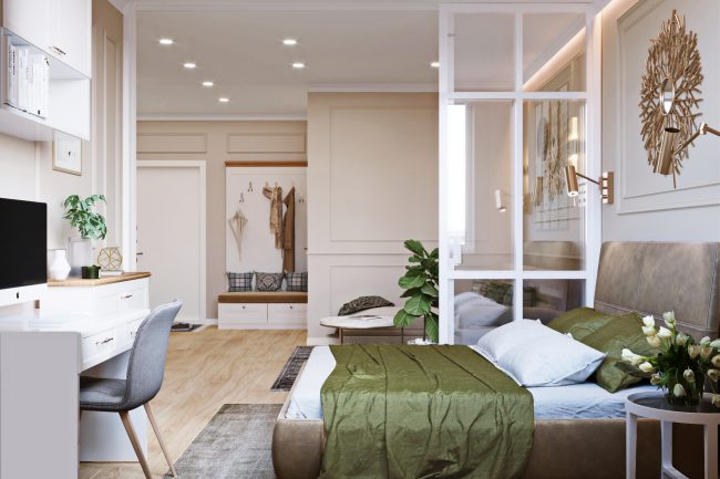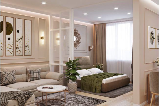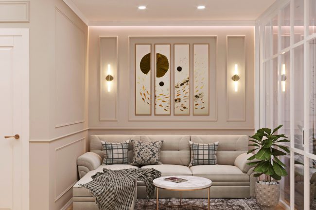 Projekt wnętrza tego mieszkania został wykonany w nowoczesnym stylu, który łączy elementy high-tech i minimalizmu, zaspokajając potrzebę praktyczności i funkcjonalności.