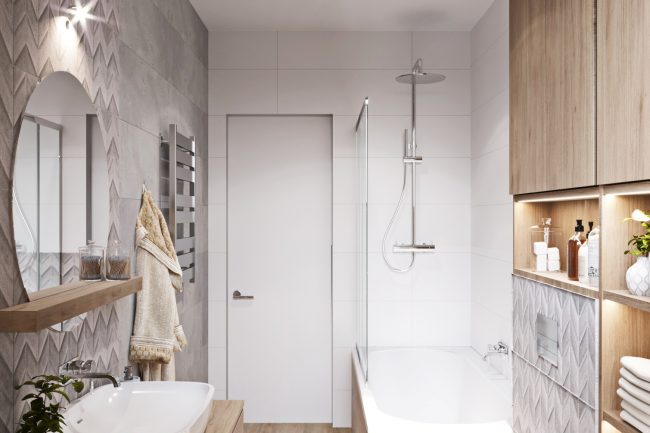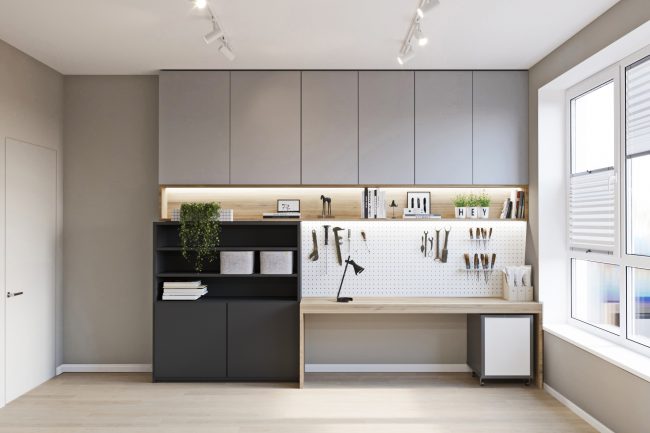 Дизайн інтер’єру сучасного будинку передбачає поєднання неперевершеної функціональності з передовими прийомами у дизайні. Даний будинок не став виключенням для нашої команди, і ми витратили всю свою професіональну експертизу, щоб створити дійсно затишний, комфортний та функціональний проект. Даний будинок призначений для сім’ї з дитиною і має два поверхи. На першому поверсі розташовані вхідна зона, вітальня, кухня, санвузол, а також гараж. Дерев’яні сходи ведуть на проміжний поверх, де розташований кабінет. Вище розташовані дві спальні та комфортна ванна.