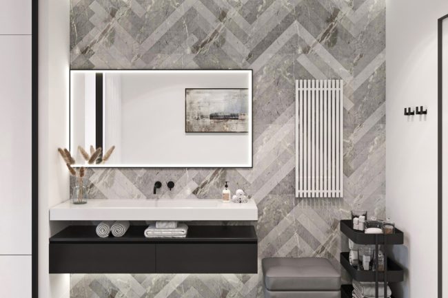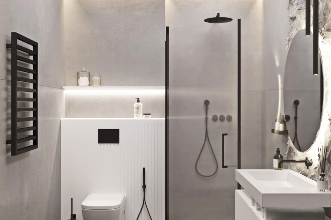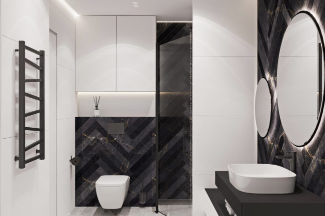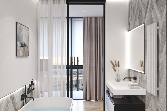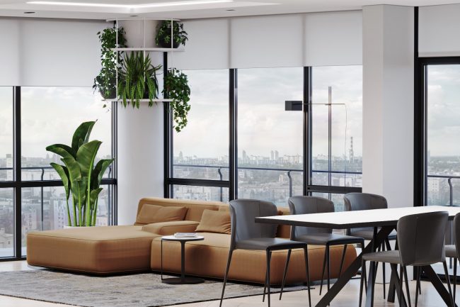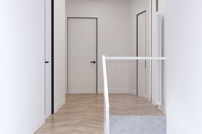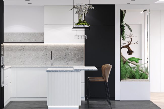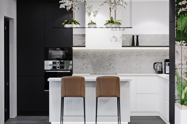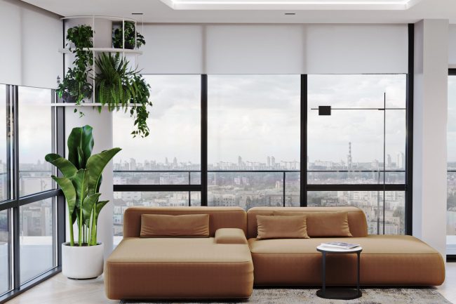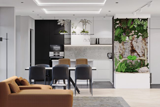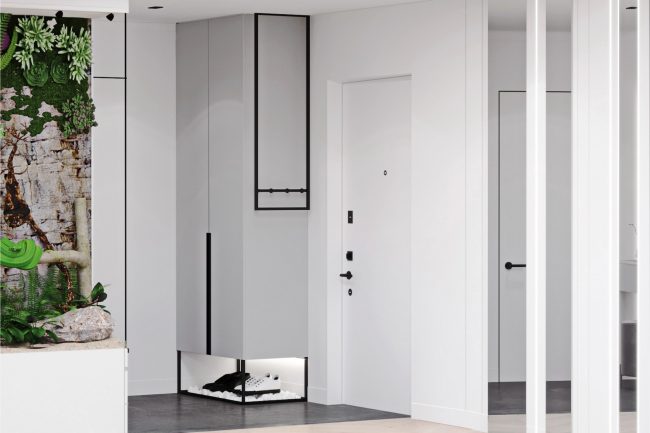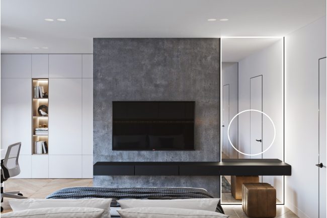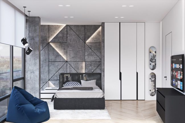 Дизайн інтер’єру цієї 4-кімнатної квартири виконано в сучасному популярному стилі, який прийшов до нас з американського ринку. Даний стиль використовується в приміщеннях відповідної площі та призначення, а його основними характеристиками є використання бетону, фарбованого в чорний колір металу, скла, сланцю та дерева. Дана квартира не була винятком для нашої команди, і за бажанням замовника ми суворо дотримувались його вимог дизайні інтерʼєру.