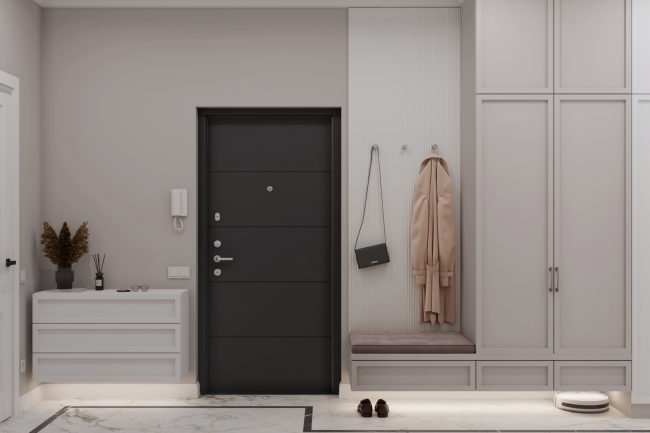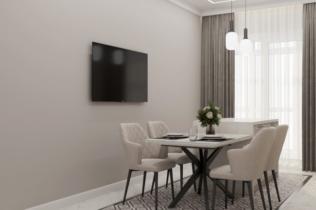 Цей проект двокімнатної квартири виконаний у стилі неокласика, що поєднує класичні елементи з сучасними тенденціями. Основна увага приділяється гармонійному поєднанню вишуканих матеріалів та стриманих пастельних відтінків, що створюють елегантний і затишний простір для життя.