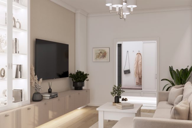 Проект дизайну інтер'єру двокімнатної квартири в стилі неокласика