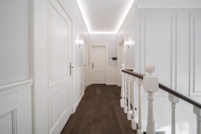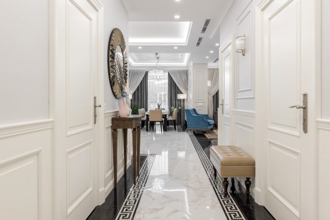 Ексклюзивний дизайн інтер’єру 2-поверхового приватного будинку для одного з наших замовників приваблює витонченістю, елегантністю та дорогим оздобленням в стилі неокласики.