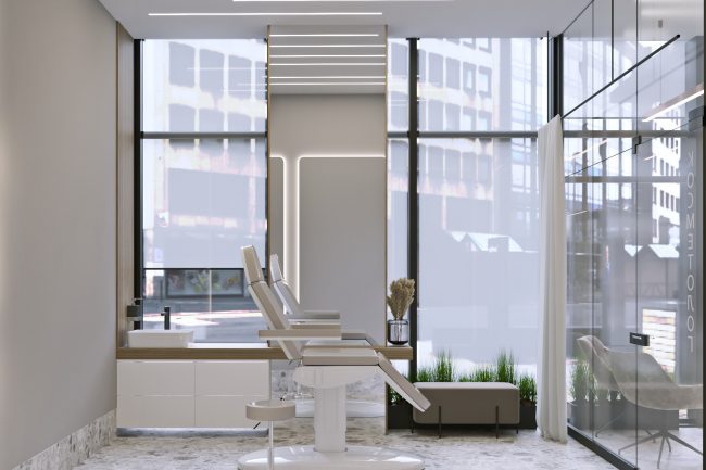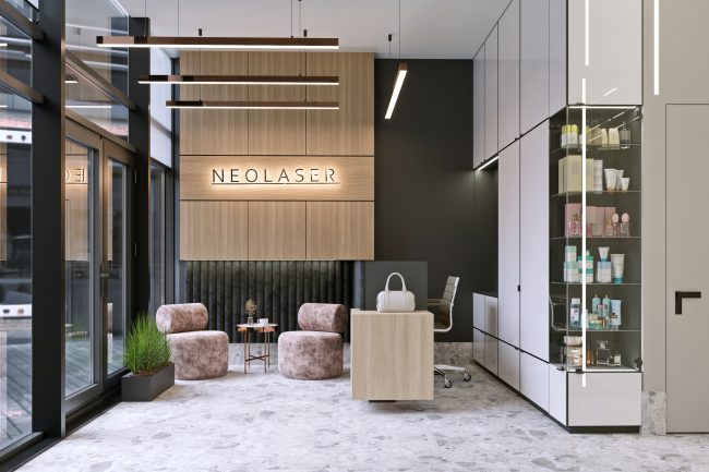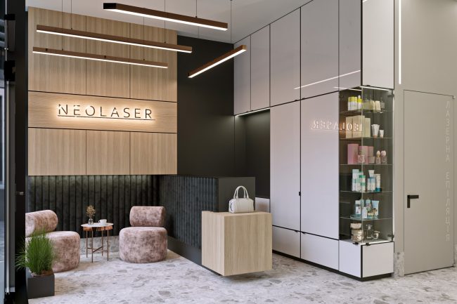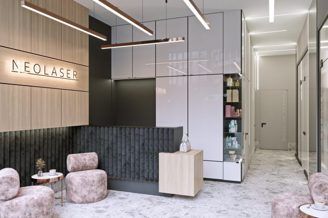 Дизайн інтер'єру клініки Neolazer в сучасному стилі.