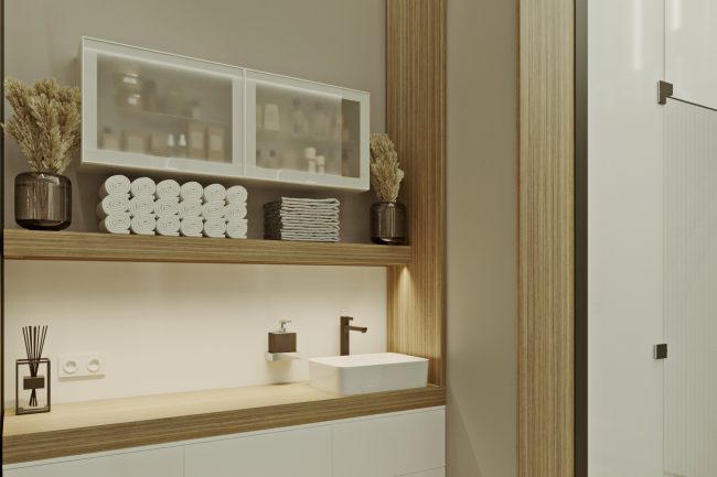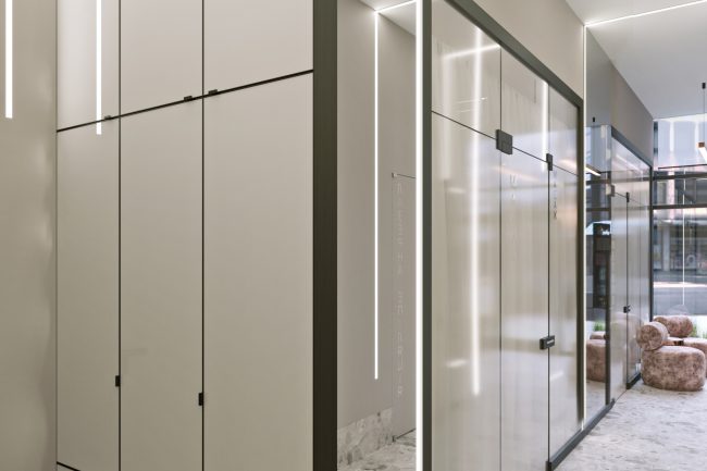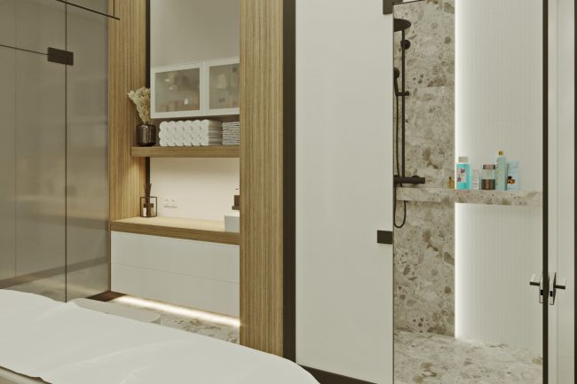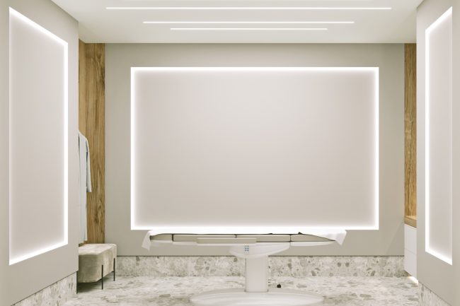 В окремому кабінеті апаратного масажу є душ, що дозволяє клієнтам насолоджуватися процедурами в зручних умовах. Це місце, де сучасні технології поєднуються з продуманим дизайном для забезпечення максимального комфорту.