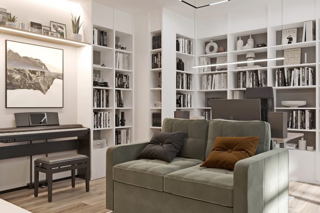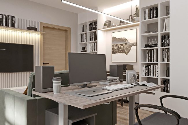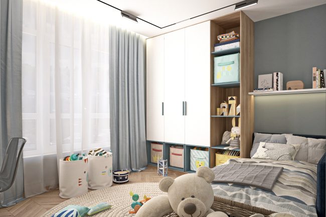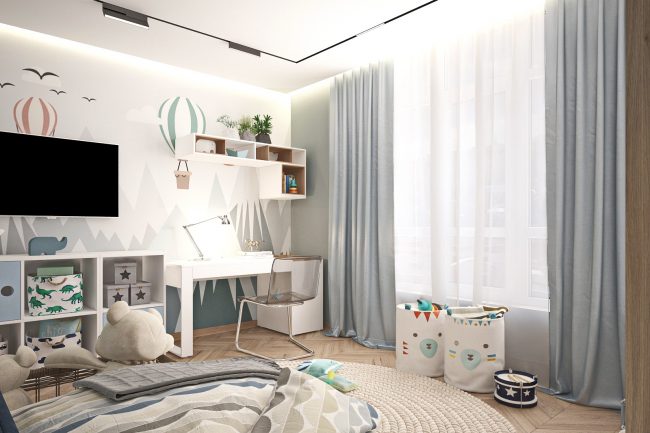 Простора дитяча кімната та кабінет на два робочі місця завершують образ сучасного житла, де функціональність поєднується з естетикою. Незалежно від обраного дизайну, важливо зберігати баланс між функціональністю і затишком, дозволяючи світлу і простору дарувати вашій квартирі свіжість та атмосферу затишку.