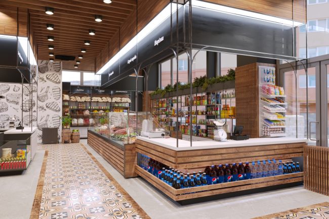 Дизайн Продуктового Магазину в Стилі Лофт: Сучасність та Індустріальний Шарм